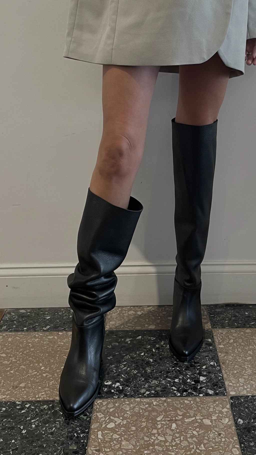 Bucanera de cuero o gamuza según color , con taco 4,5 cm y caña flexible para usar por encima de la rodilla o arrugada